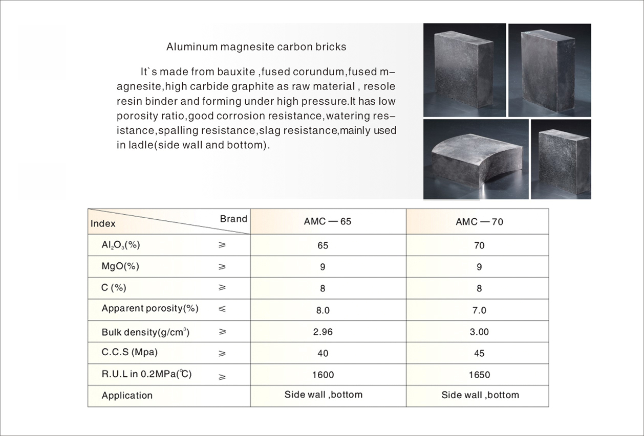 Aluminum magnesite carbon bricks for ladle