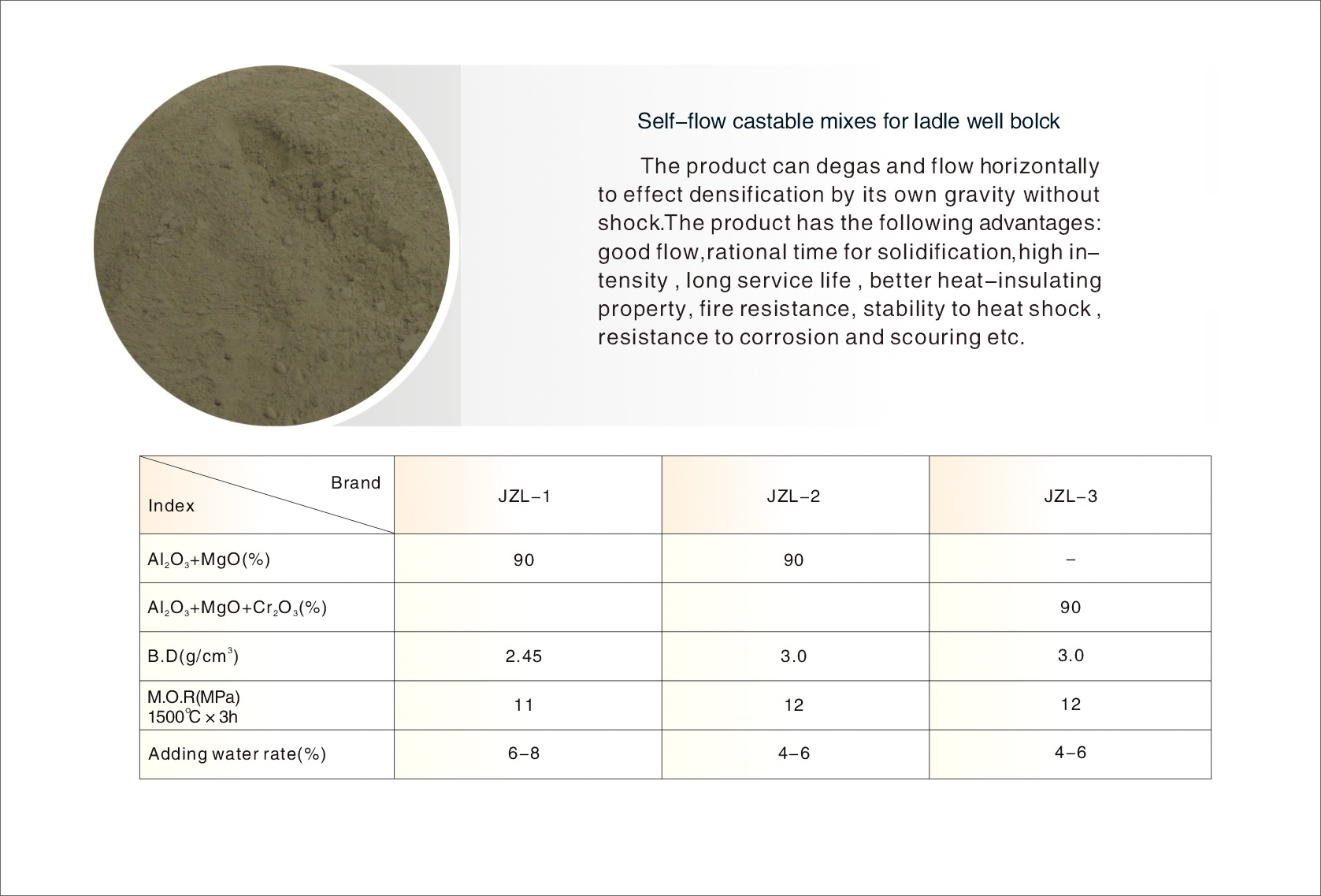 Self-flow castable mixes for ladle well bolck